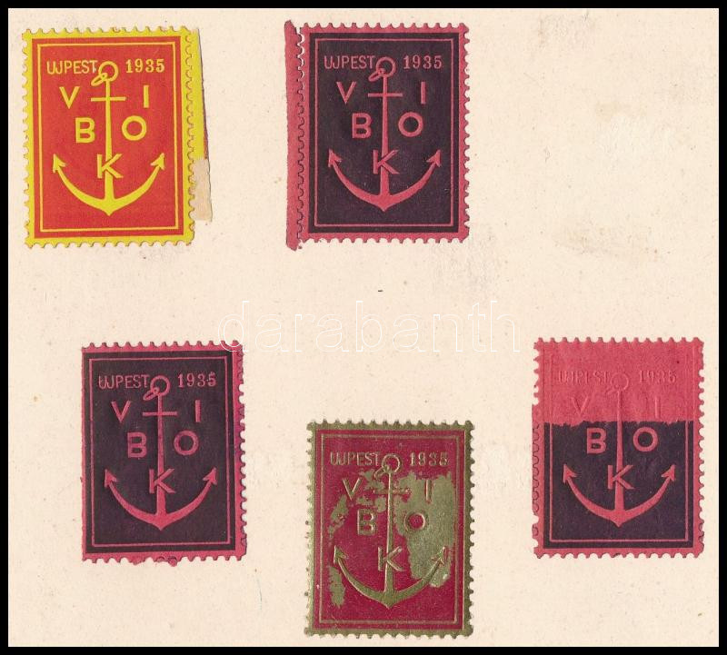 1935 Újpest 5 db levélzáró, közte színpróbák is