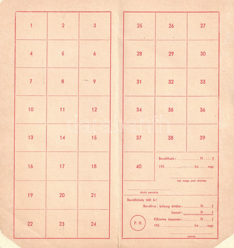 [Aprónyomtatvány] Iskolai takarékbélyeg gyűjtőlap. (1955 körül).