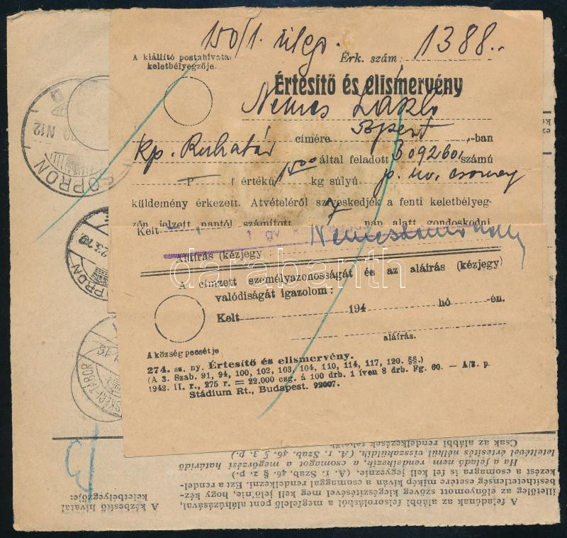 https://www.darabanth.com/en/514-Auction-philately-postcards-numismatics-artwork-books-colletibles-jewelry/515.0/Hungarian-philately-and-postal-history/Pengo-period-1926-1944~53/1943-Csomagszallito-Elkoltozott-cimkevel-visszakuldve~II3482164