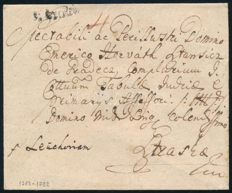 1783-1792 Portós levél 4kr viteldíjjal "v. Eperjes" (Rompes 200p) - Sztrazska