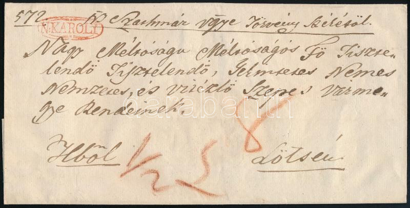 1833 Hivatalos levél piros / red "N:KAROLY" (Gudlin 300 p)