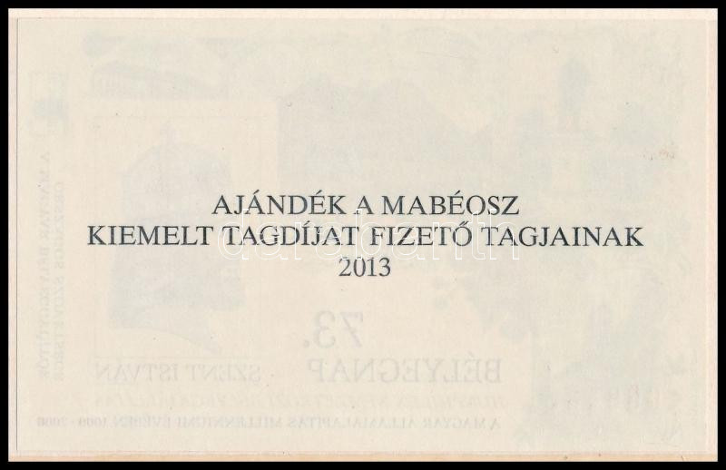 2013 73. Bélyegnap Székesfehérvár emlékív "Ajándék a MABÉOSZ kiemelt tagdíjat fizető tagjainak 2013"