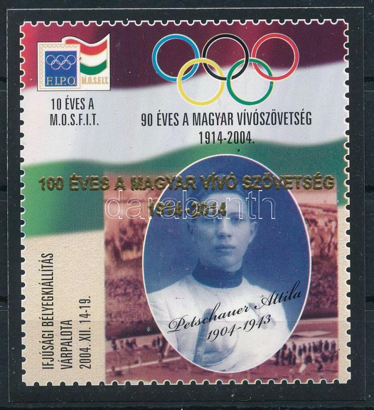 2014 100 éves a Magyar Vívószövetség felülnyomott emlékív arany dombornyomással
