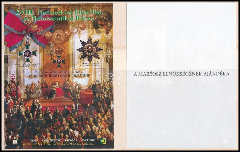 2014 XVIII. Nemzetközi Filatéliai és Numizmatikai Börze (II.) vágott emlékív pár "A MABÉOSZ ELNÖKSÉGÉNEK AJÁNDÉKA" hátoldali felirattal