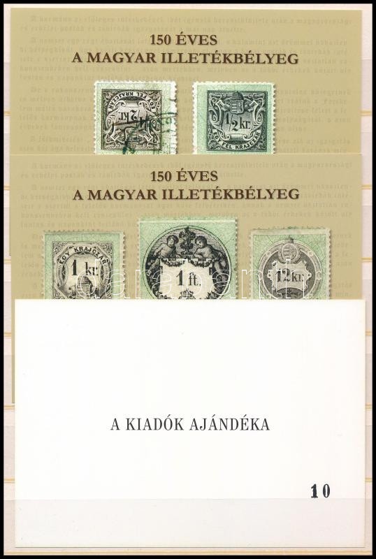 2018 150 éves a magyar illetékbélyeg 3 darabos emlékív garnitúra "A KIADÓK AJÁNDÉKA" hátoldali felirattal