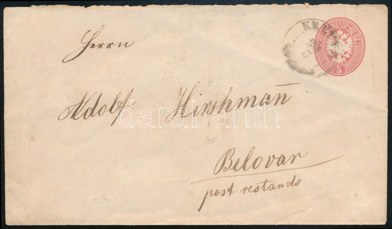 ~1863 5kr díjjegyes boríték "KREUTZ" - Belovar