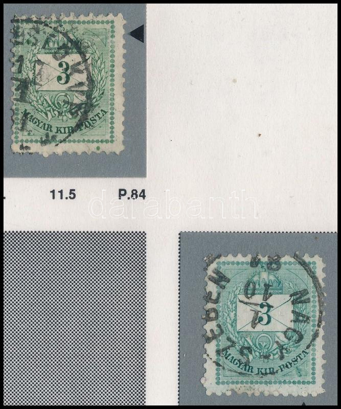 1881 2 db 3kr vésésjavítással, kitörési foltokkal (ex Orbán, Sebestyén aranyérmes kiállítási gyűjteményből)