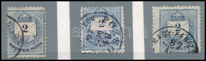1881 3 db 2kr erős méret különbségek, extra keskeny, széles (ex Orbán, Sebestyén aranyérmes kiállítási gyűjteményből)