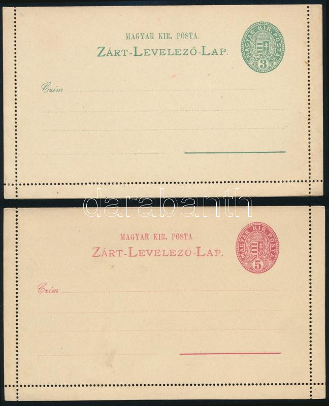 1886 3kr és 5kr díjjegyes zárt használatlan levelezőlap