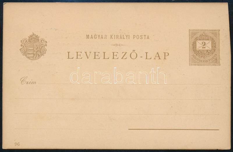 https://www.darabanth.com/en/514-Auction-philately-postcards-numismatics-artwork-books-colletibles-jewelry/515.0/Hungarian-philately-and-postal-history/The-issues-between-1874-1899~35/1896-2kr-dijjegyes-milleniumi-kepeslap-hasznalatlan~II3482889