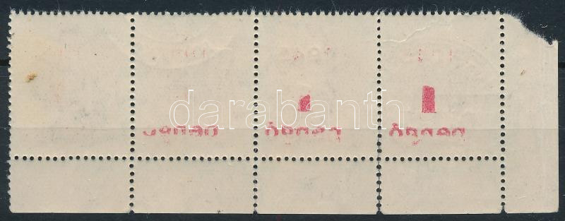 1945 Kisegítő portó 1P/40f ívsarki négyescsík a felülnyomat részleges gépszínátnyomatával
