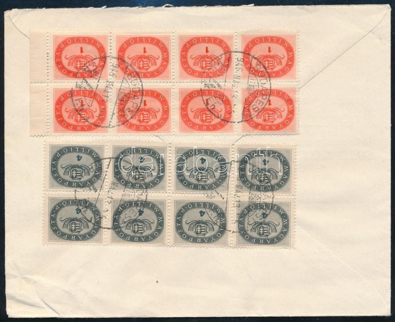 1946 (15. díjszabás) Svájcba küldött levél Milliós 1MP és 4MP nyolcastömbbel bérmentesítve Budapestről