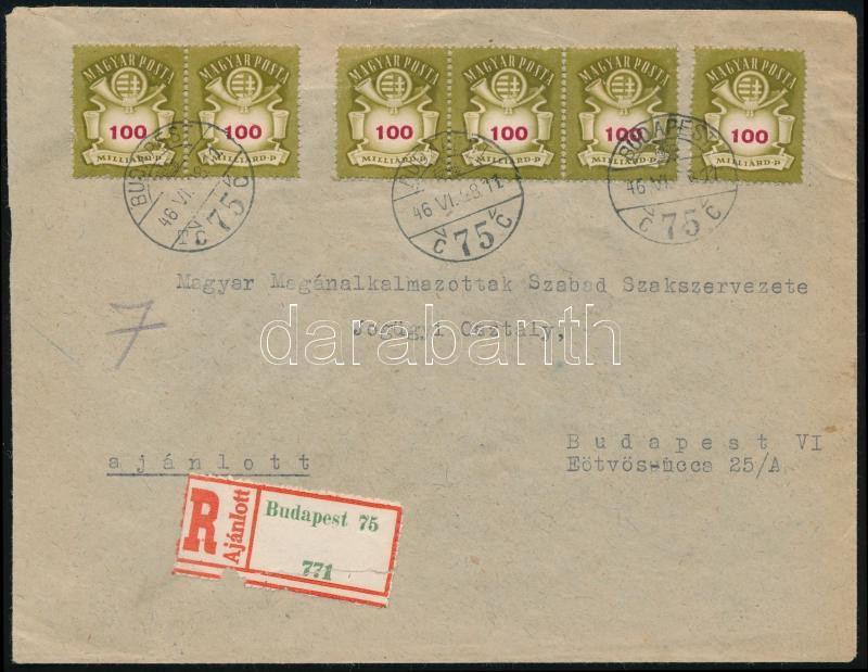 1946 (21. díjszabás) Budapest helyi ajánlott levél 11 db Milliárdos 10...