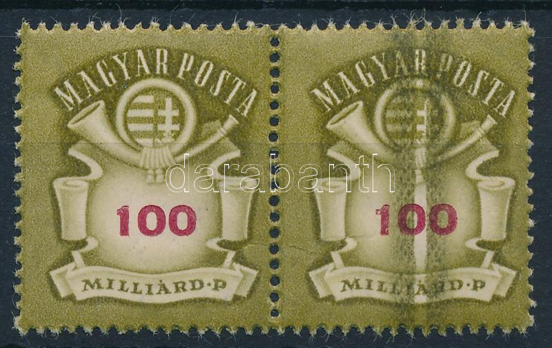 1946 Milliárdos 100 MP pár rákel csíkkal (ránc) / Mi 916 pair with paint stripe (crease)