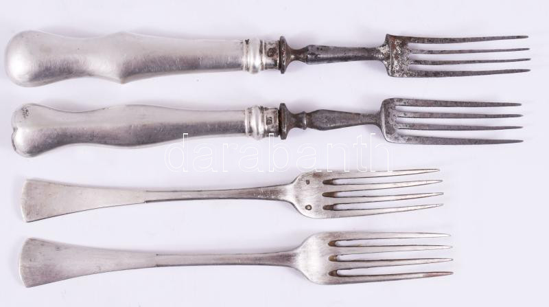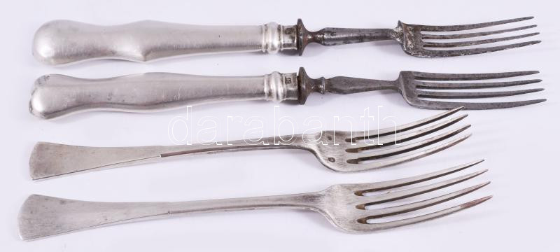 4 darab ezüst (Ag) és ezüst (Ag) nyelű evőeszköz, jelzett, bruttó 214g