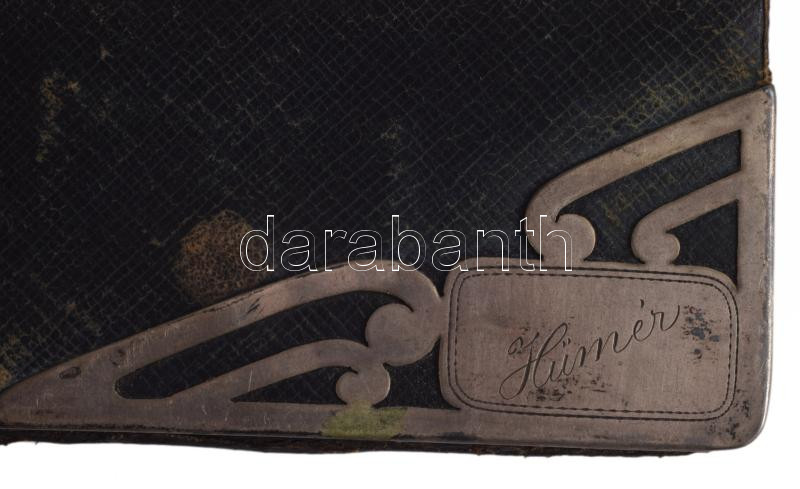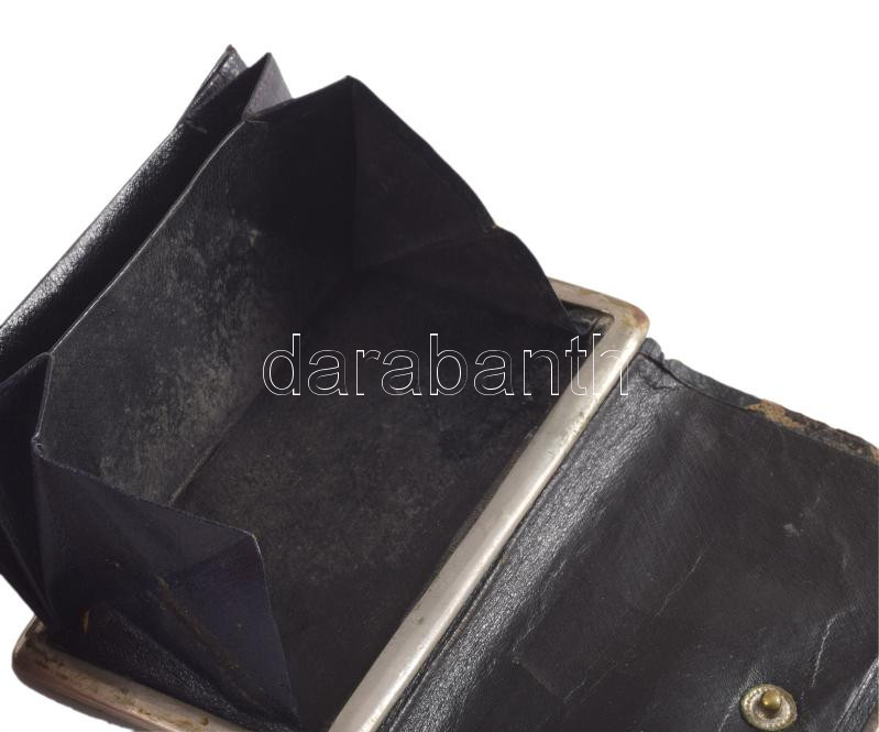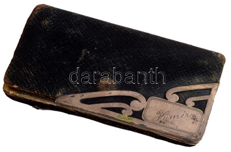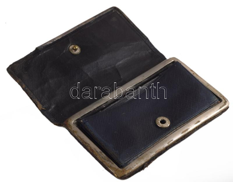 Bőr tárca, ezüst (Ag) díszítéssej, jelzett. Hűmér névre 6x11 cm