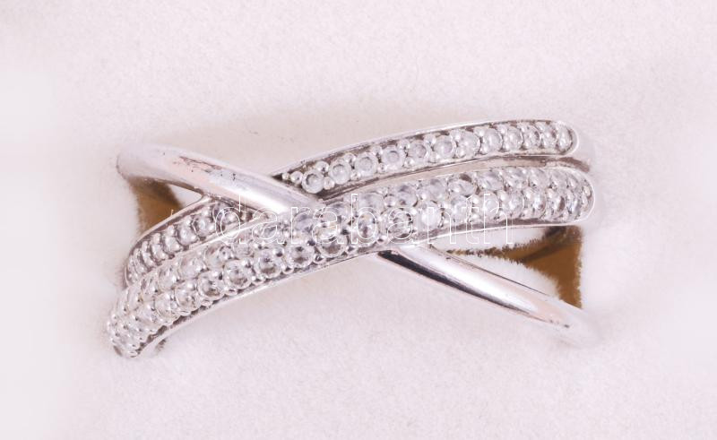 Designer ezüst (Ag) gyűrű, cirkóniával, m:62, jelzett, bruttó 6,3g