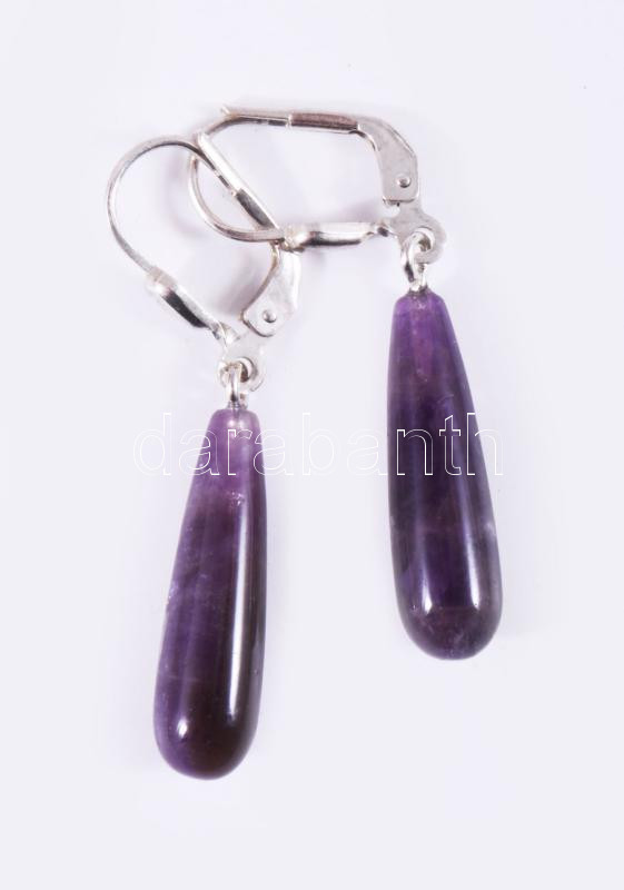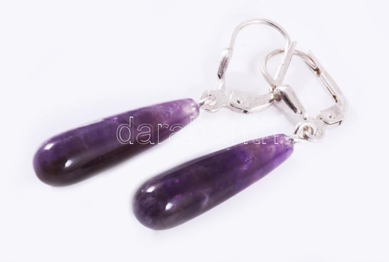 Ezüst (Ag) fülbevaló ametiszt cseppel, jelzett, h: 3,5 cm, bruttó: 3,1 g
