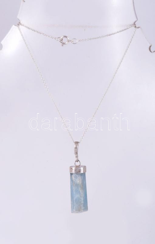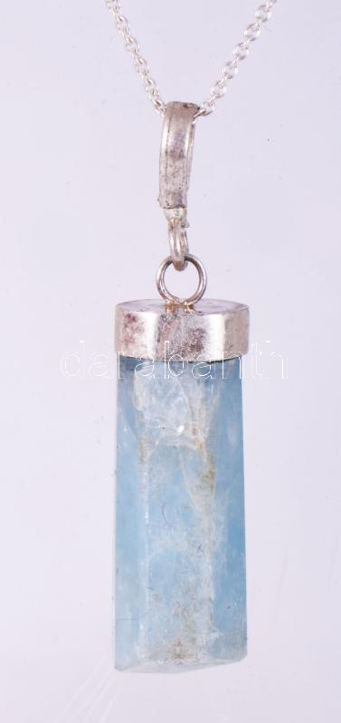 Ezüst (Ag) lánc akvamarin medállal, jelzett, h: 38 cm, medál: 3×1 cm, ...