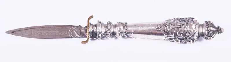Ezüst (Ag) nyelű levélbontó kés, h: 16 cm, jelzett, bruttó 27,3g