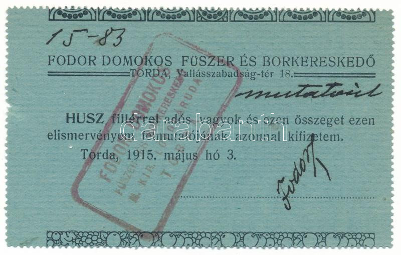 1915. Torda 20f "Fodor Domokos Füszer és Borkereskedő" T:XF ...