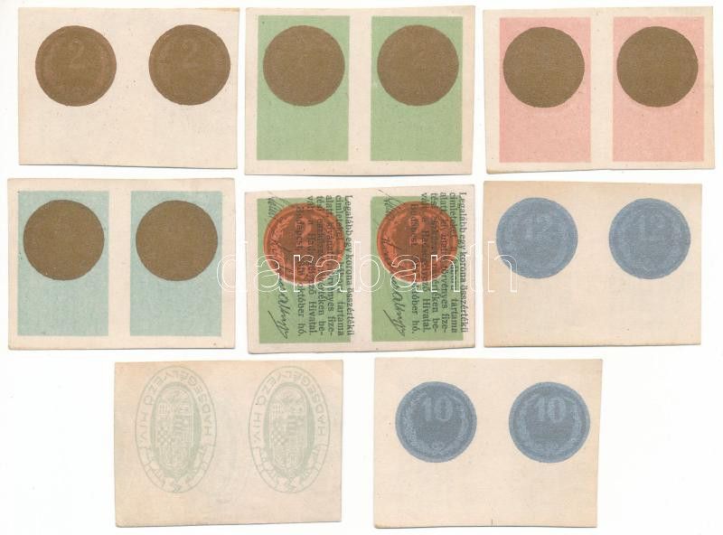 Hungary / Budapest 1916. 2 Fillér "Hadsegélyező Hivatal (Military Aid Office)" with printing error and incomplete print (8xdiff) C:AU-XF