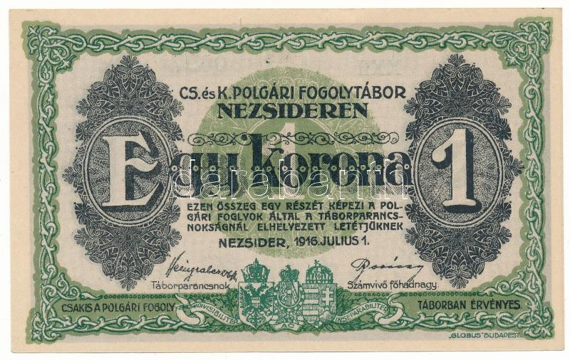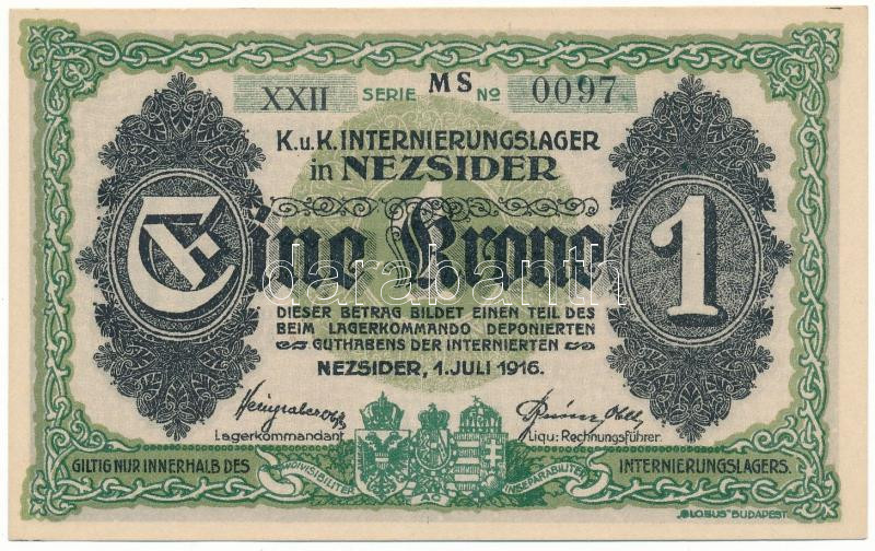 1916. Nezsider / Hadifogolytábor 1916. 1K római sorozat- és arab sorsz... https://www.darabanth.com/en/514-Auction-philately-postcards-numismatics-artwork-books-colletibles-jewelry/515.0/Numismatics/Emergency-Coins-and-Notes~1308/1916-Nezsider-Hadifogolytabor-1916-1K-romai-sorozat-es-arab-sorszammal-XXII-0097-MS-je~II3421634