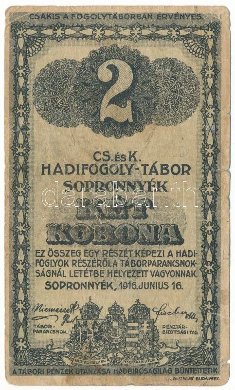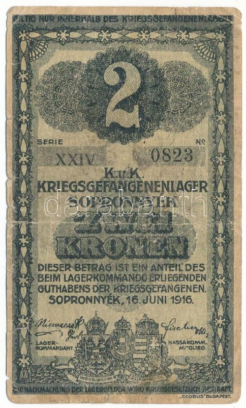 Hungary / Sopronnyék / POW camp 1916.06.16. 2 Krone with Roman series and arabic serial numbers "XXIV 0823" C:VG