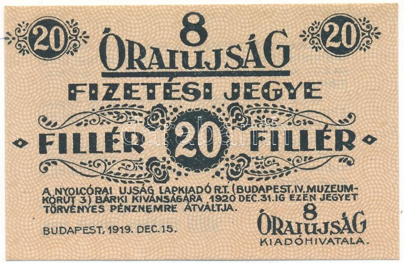 1919 Budapest 1919. 20f "8 Órai Újság fizetési jegye" T:AU