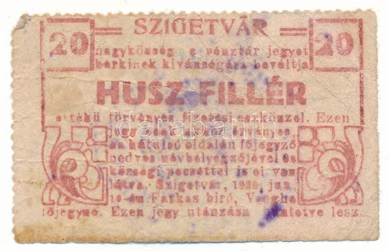 https://www.darabanth.com/en/514-Auction-philately-postcards-numismatics-artwork-books-colletibles-jewelry/515.0/Numismatics/Emergency-Coins-and-Notes~1308/1920-Szigetvar-20f-hatlapjan-3Cem3ESOMOGY-VARMEGYE-SZIGETVAR-KOZSEG3Cem3E-belyegzessel-TF3C~II3482585
