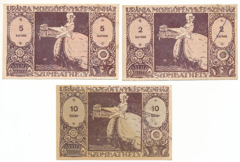 1920. Szombathely "Uránia Mozgófényképszínház" 10f + 2K + 5K utalvány T:XF-VF mind hajtatlan, foltos, kettőn kézírás
