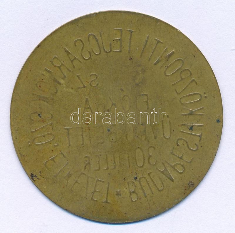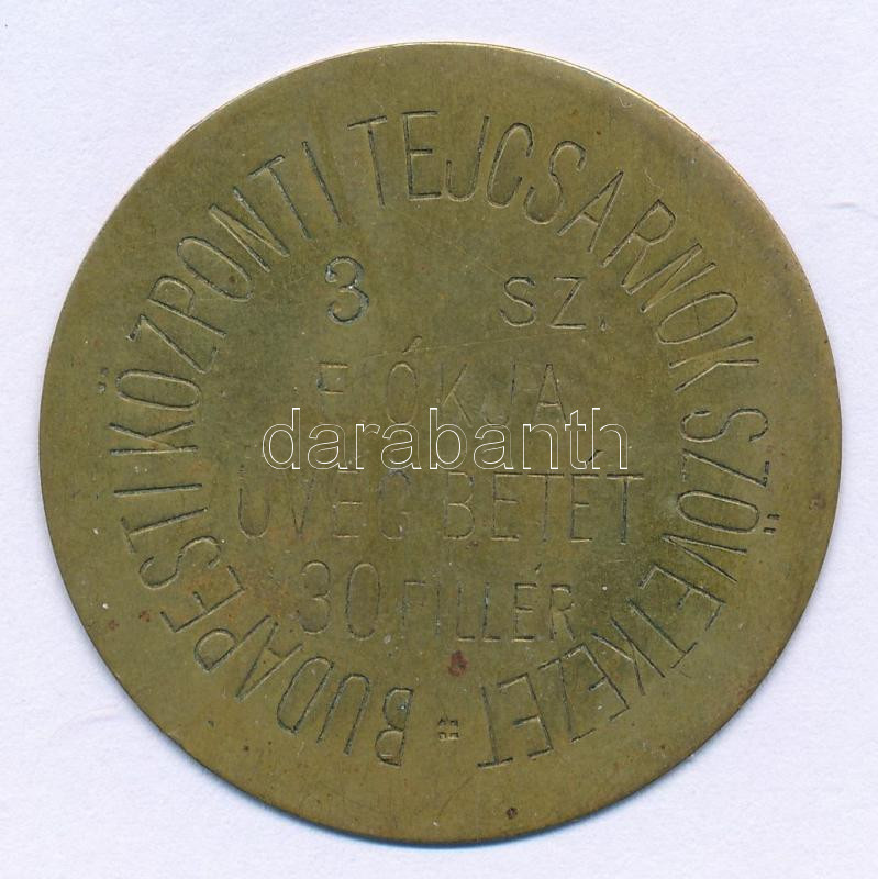1930 k. "Üvegbetétjegy / Budapesti Központi Általános Tejcsarnok Rt. 3. sz. fiókja" 30f sárgaréz üvegbetétjegy (40mm) T:XF