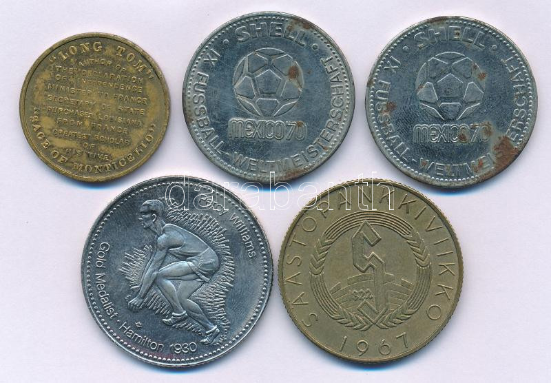 1967-1978 k. 5xklf portrés fém emlékérem / zseton tétel (közte Amerikai Egyesült Államok, Finnország, Németország, Kanada) T:XF,VF, patina
