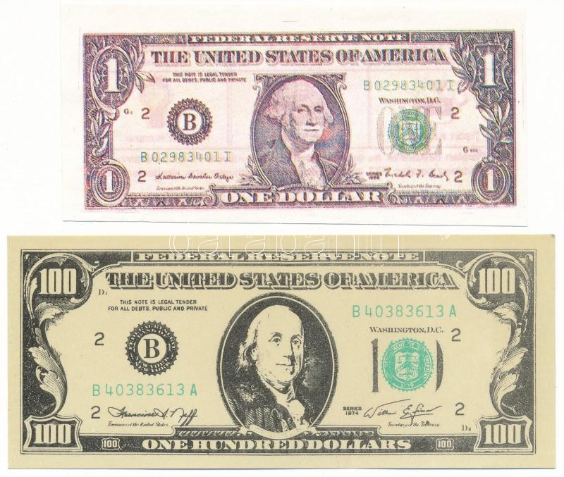 Amerikai Egyesült Államok DN 1$ reklámpénz (kisméretű) + 100$ játékpénz (kisméretű) T:XF,F