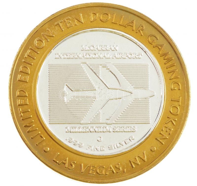 Amerikai Egyesült Államok / Las Vegas DN 10$ "Alamo Airport" Ag kaszinózseton sárgaréz gyűrűben (br.37,33g/0.999/43mm) T:PP patina USA / Las Vegas ND 10 Dollars "Alamo Airport" Ag casino gaming token in brass frame (br.37,33g/0.999/43mm) C:PP patina