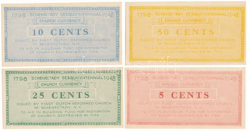 Amerikai Egyesült Államok / New York / Schenectady 1948. 5c-50c (4xklf) a Schenectady-beli Első Holland Református templom 150. évfordulójának alkalmából kiadott emlékkiadások T:AU