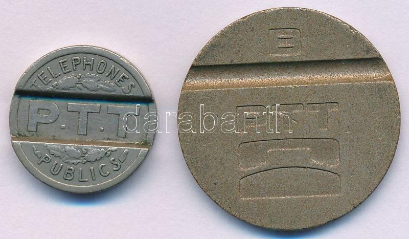 Franciaország 1937. "Republique Francaise / Telephones Publics PTT" Cu-Ni telefon zseton (18mm) + DN "B - PTT" fém telefon zseton (27,5mm) T:VF