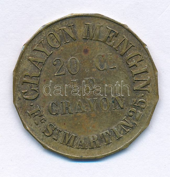 France ND Paris "HOMMAGE A L'INVENTEUR / CRAYON MENGIN 20 Cs- LE CRAYON Fg St MARTIN 25" two-sided brass advertising token (24mm) C:XF