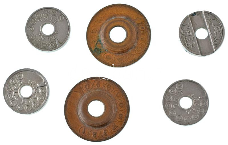 Izrael 1953-1966. Telefon bárca (Asimon) (6xklf) T:XF Israel 1953-1966. Telephone token (Asimon) (6xdiff) C:XF
