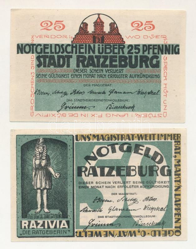 Description: Német Birodalom / Weimari Köztársaság / Ratzeburg 1920 k. 25pf-50pf (2xklf) T:AU