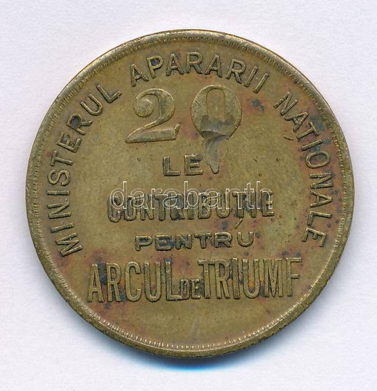 Románia 1935 k. 20L "Arcul de Triumf" kétoldalas sárgaréz zs... https://www.darabanth.com/en/514-Auction-philately-postcards-numismatics-artwork-books-colletibles-jewelry/515.0/Numismatics/Emergency-Coins-and-Notes~1308/Romania-1935-k-20L-3Cem3EArcul-de-Triumf3Cem3E-ketoldalas-sargarez-zseton-29mm-TVF-patina3Cbr~II3405445