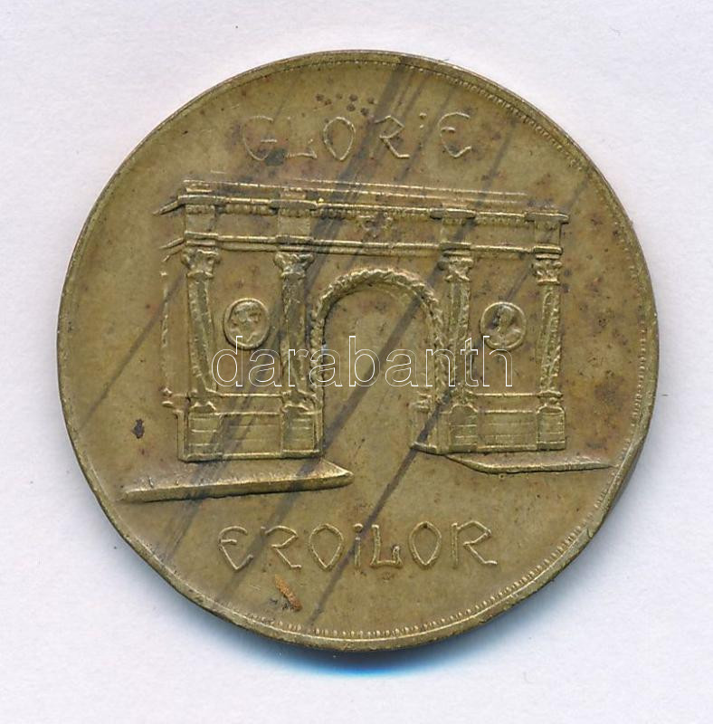Description: Románia 1935 k. 20L "Arcul de Triumf " kétoldalas sárgaréz zseton (29mm) T:VF, patina