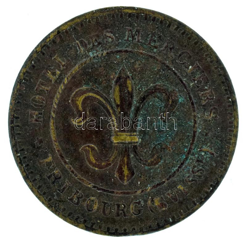 Svájc DN Fribourg 5c "Hotel des Merciers" kétoldalas sárgaréz kereskedelmi zseton (19mm) T:XF, patina, kis peremhiba