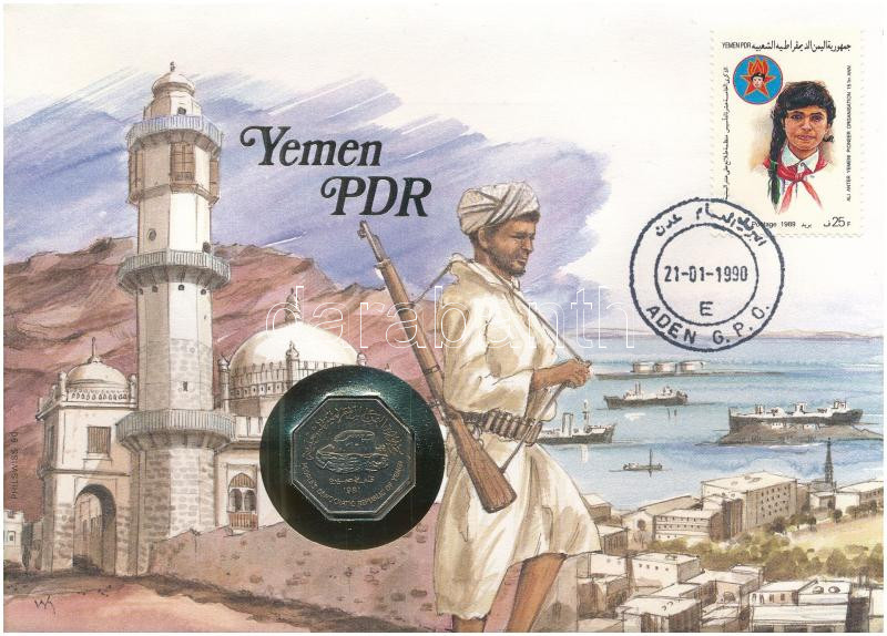 Jemen 1981. 100f Cu-Ni felbélyegzett borítékban, bélyegzéssel, német nyelvű leírással T:UNC