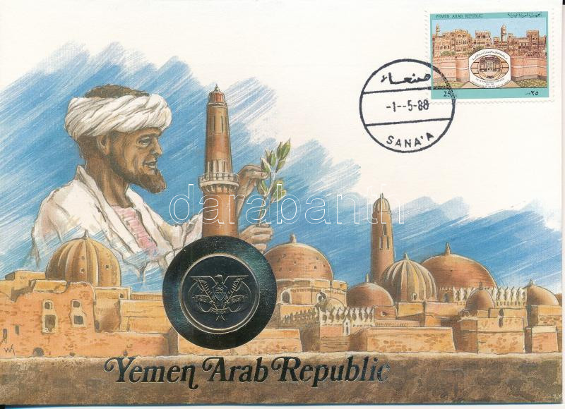 Jemen 1985. 50f Cu-Ni felbélyegzett borítékban, bélyegzéssel, német nyelvű leírással T:AU, patina