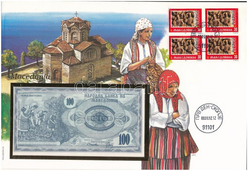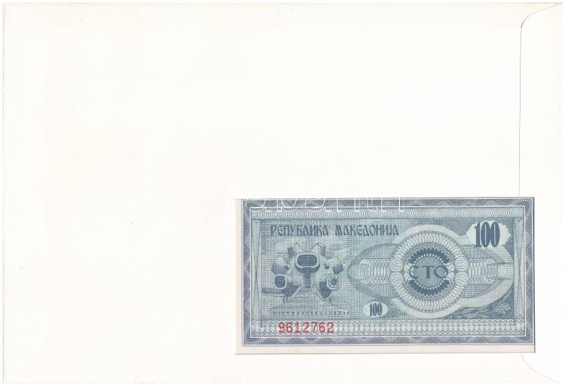 Macedonia 1992. 10 Dinara in envelope with stamp and cancellation C:UNC