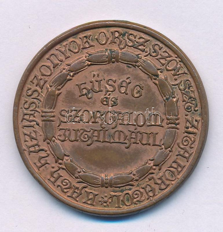 Description: 1908-1946. "A KATH. HÁZIASSZONYOK ORSZ. SZÖV. SZT. ZITA KÖRÉTŐL - HŰSÉG ÉS SZORGALOM JUTALMÁUL " egyoldalas bronz jutalomérem, mellszalag és fül nélkül (31mm) T:XF patina