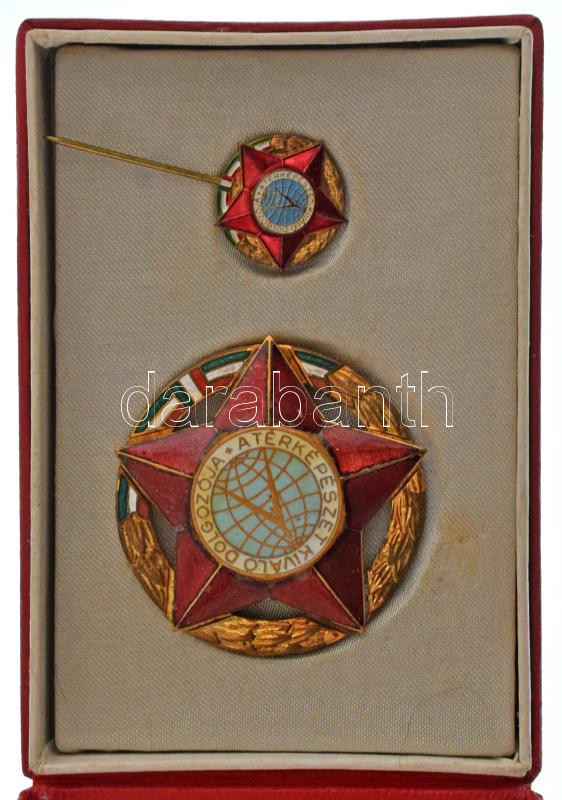 1950 k. "A térképészet kiváló dolgozója" aranyozott, zománcozott kitüntető jelvény miniatűrrel, eredeti tokban T:AU