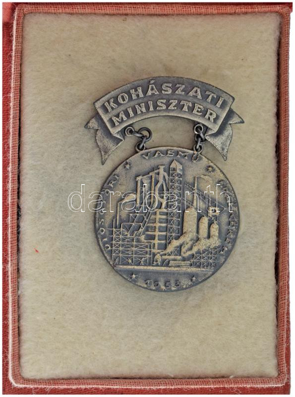 1953. "Diósgyőri Vasmű Emlékérem - Kohászati Miniszter" ezüstpatinázott bronz emlékérem eredeti tokban (32mm) T:AU