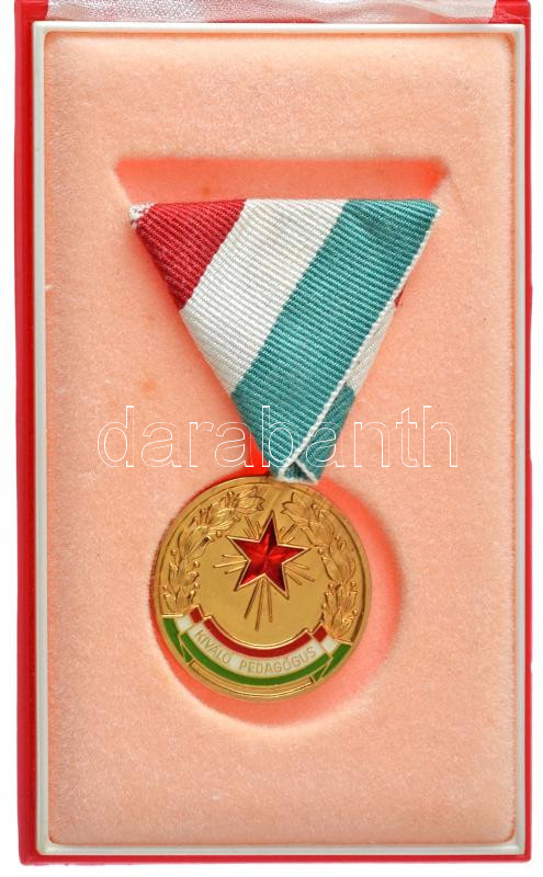 1960-1970. "Kiváló Pedagógus" aranyozott, műgyantás fém kitüntetés mellszalagon, miniatűrrel, sérült tokban (31mm) T:AU